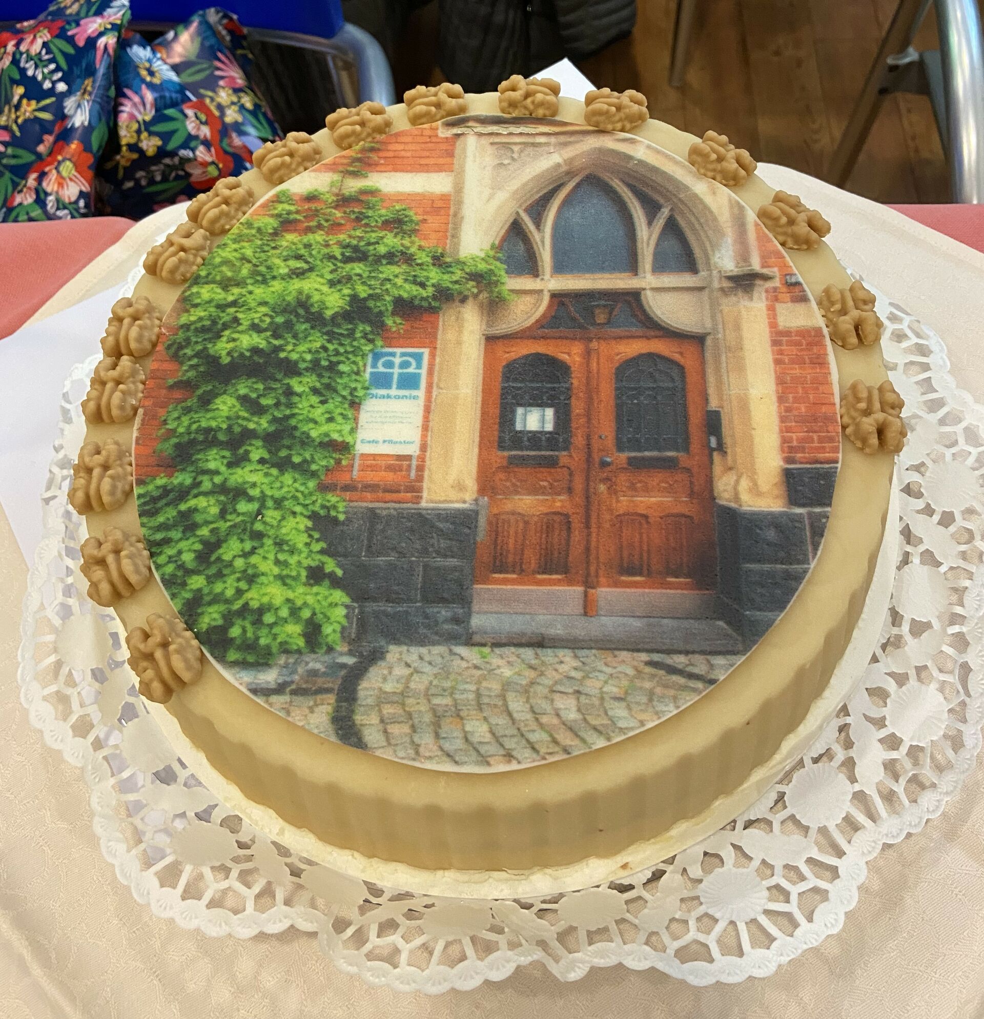 Der Marzipan-Liebhaber bekam vom Fachbereich Wohnungslosenhilfe eine Marzipan-Torte mit dem Bild der Eingangstür Kapuzinerstraße, von den Kolleg*innen aus Verwaltung, Beratung und Pflege eine Riesen-Schachtel Marzipan-Konfekt, ein Album mit Erinnerungsfotos und Zuwachs für seine “Cow Parade”-Sammlung, um nur ein paar Geschenke aufzuzählen, über die er sich sehr gefreut hat.